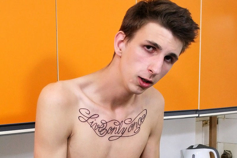 Jesse Jenkins, un minet emo mince et lisse, sort sa bite non coupée pour une branlette
