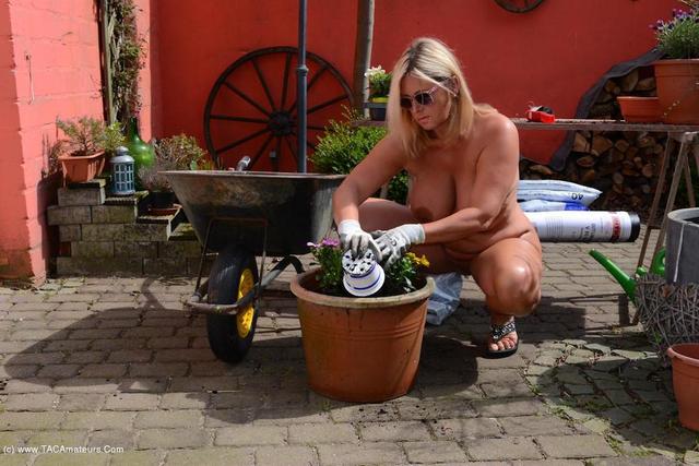 Au printemps, toutes les femmes veulent des fleurs dans leur jardin. Moi aussi. Dans ma maison et autour, dans mon jardin, je suis toujours nue quand les températures sont bonnes. Je m'amuse donc beaucoup à planter les fleurs sans vêtements.