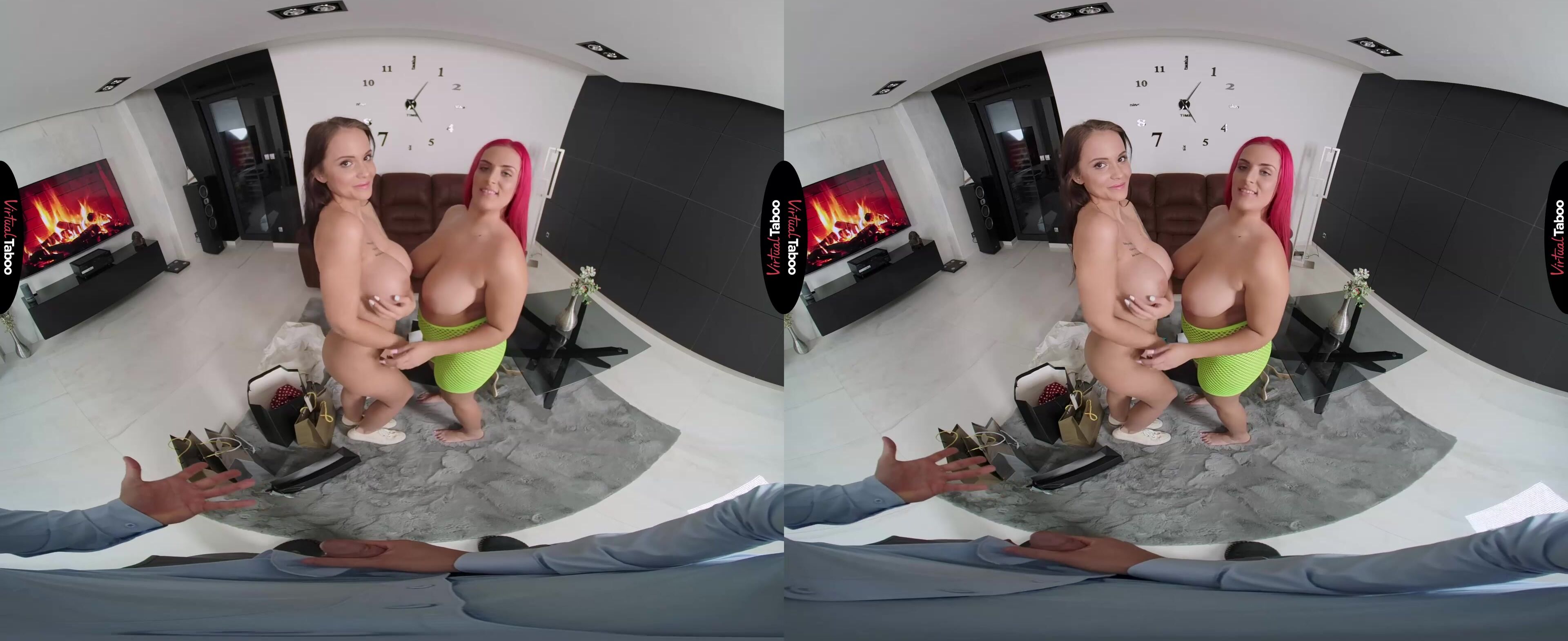 Olivia Stark est excitée après une journée de shopping. La femme de son amant est en déplacement pour une semaine et il lui a donné la carte de crédit pour acheter des tenues sexy pour les occuper au lit. Elle essaie de vous montrer une partie de ce qu'elle a acheté, mais vous ne pouvez pas détacher vos yeux de son énorme cul. Vous en avez assez vu et sortez votre bite pour lui montrer à quel point ses énormes joues vous ont fait vibrer. Alors qu'Olivia se prépare à la mettre dans sa bouche, votre belle-fille Jennifer Mendez rentre à la maison à l'improviste. Voyant une opportunité, elle vous dit qu'elle ne le dira pas à maman tant que vous la laissez faire une virée shopping et la laisser participer à ce plaisir de réalité virtuelle. Vous n'êtes pas sur le point de dire non à cela, surtout quand elle sort ses seins et vous montre qu'ils sont presque aussi gros que ceux de votre petite amie pulpeuse. Si quatre gros seins valent mieux que deux, alors certainement deux bouches affamées valent mieux qu'une. Olivia le mouille et le réchauffe avant de le passer à Jennifer. Elle le suce avec avidité, adorant la sensation coquine de goûter la grosse bite de son beau-père. Puisque tu convoites le gros cul de ta copine toute la journée, Olivia prend la première place, laissant tomber ses hanches et claquant son corps contre toi pendant que Jennifer regarde avec un grand sourire sur son joli visage. Elle t'aide à glisser ta bite dans ce cul géant sachant que maman ne te laisse jamais faire ça. C'est si beau qu'elle te demande de lui faire éclater sa cerise anale comme dans les meilleurs films porno VR. Tu profites pleinement des deux femmes dans tous les trous avant d'exploser sur Olivia et de regarder Jennifer lécher chaque goutte. Elles ont toutes les deux mérité une autre virée shopping.