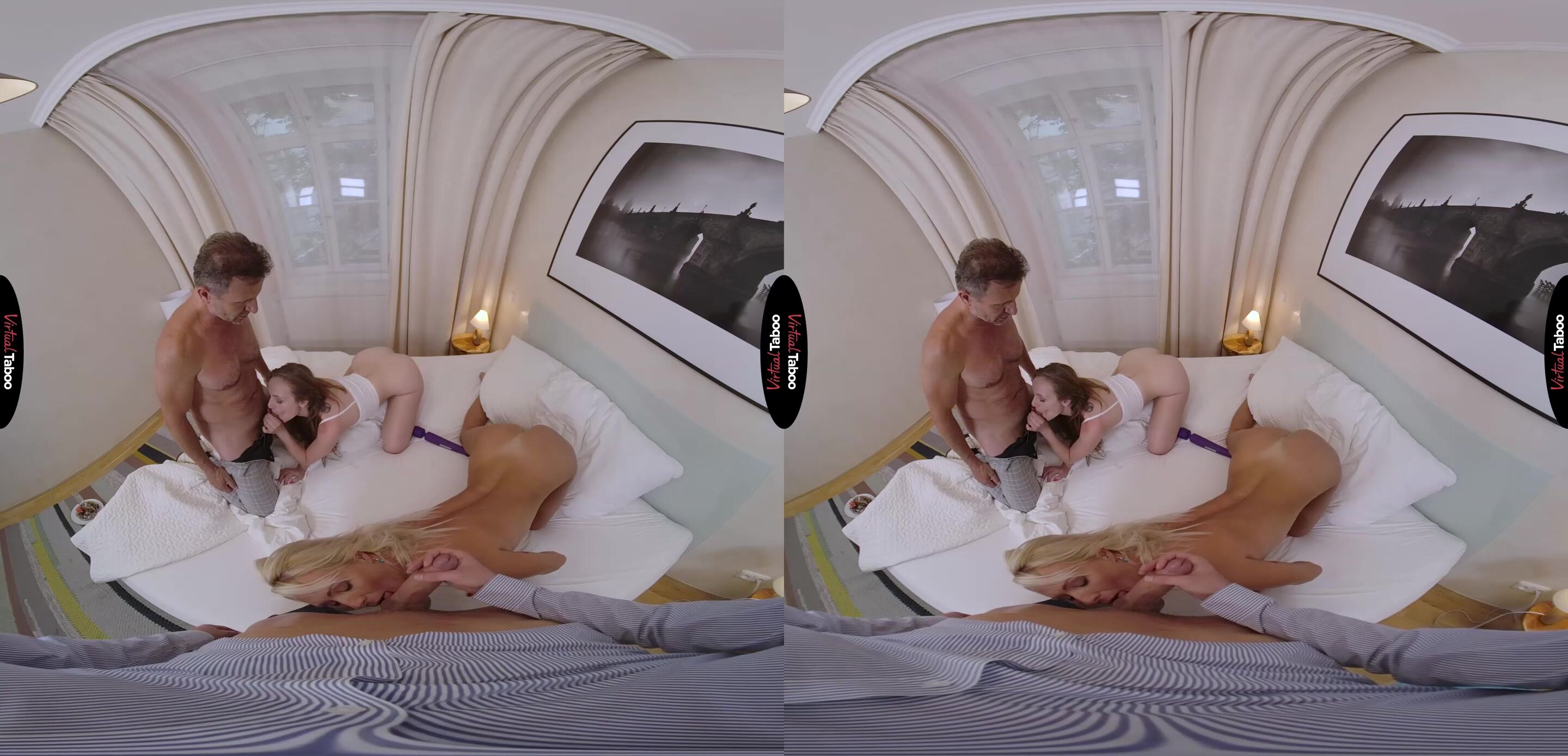 Lady Bug a dix-neuf ans aujourd'hui. Sa famille a prévu une fête spéciale avec des ballons, des cadeaux et un gâteau fait maison. Tout devrait bien se passer, mais son demi-frère aîné est plus préoccupé par le flirt avec maman, Kathy Anderson. Cette MILF est trop excitée pour dire non à sa jeune bite dure même avec son mari dans la pièce d'à côté. Ils ne font pas assez attention et papa les surprend en train de baiser. Il est en colère mais ne veut pas que cela gâche la journée spéciale de Lady Bug. Dans cette scène de porno VR, ils lui apportent le gâteau et lui chantent, mais la jolie adolescente se comporte étrangement. Papa retire les couvertures du lit et ils voient tous que Lady Bug utilise l'énorme vibromasseur de maman. Il est clair que Lady Bug veut fêter son anniversaire et comme son frère est déjà excité, il sort sa grosse bite. Papa se joint à l'amusement, attrapant le vibromasseur et le travaillant sur la chatte humide de Lady Bug. Maman se joint à l'amusement VR, suçant la grosse bite de son fils avec la fille qui fête son anniversaire. Kathy voit à quel point son mari est excité et monte sa bite pendant que frère et sœur baisent à quelques centimètres d'eux. Ils échangent leurs partenaires pour que Lady Bug puisse essayer un peu de la bite de papa. Elle n'arrive pas à décider laquelle elle préfère et veut les essayer encore et encore. La mère et la fille baisent et sucent toutes les deux jusqu'à ce qu'elles se retrouvent avec de grosses giclées de crème de bite sur la langue. Ne manquez pas toute l'action torride de VR Fantasy alors que cette famille excitée se met à nu et transforme l'anniversaire de Lady Bug en une orgie taboue.