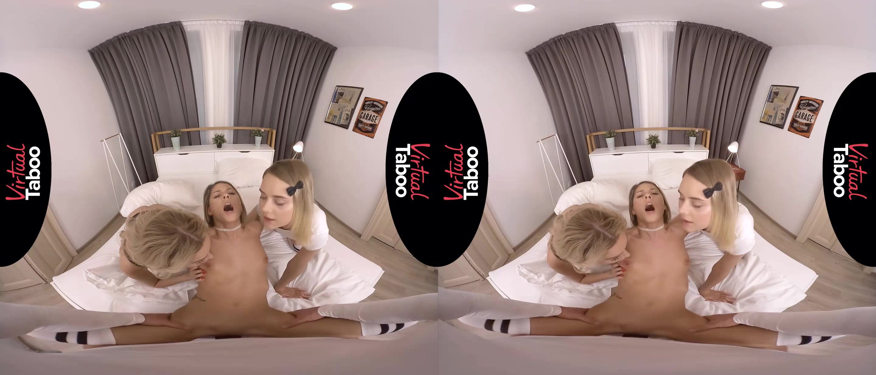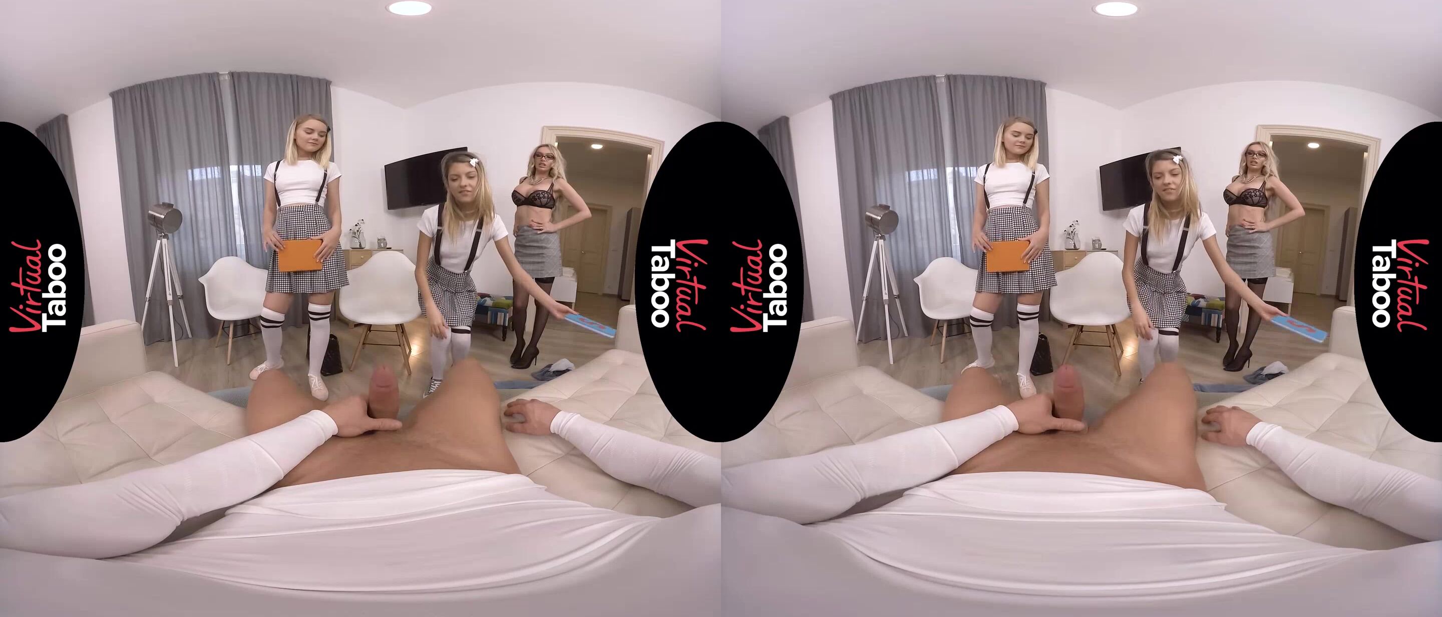 Amber Jayne, une prof sévère, en a assez de l'élève rebelle Rebecca Volpetti et de ses pitreries à l'école. Après avoir surpris Rebecca et son amie Emily en train de s'embrasser dans les toilettes des filles, Amber décide de rendre visite à Rebecca. Elle commence à expliquer la situation au beau-père de Rebecca et remarque qu'il la regarde fixement. Ses regards lubriques et l'histoire des baisers de ses élèves excite de plus en plus Amber. Alors qu'elle flirte en retour, elle remarque que sa bite grandit dans son pantalon et Amber veut juste en avoir un peu pour elle-même. Elle la sort et commence à lécher la tête, constatant qu'il n'a aucune objection à se faire sucer par la belle prof de sa fille. Rebecca et Emily rentrent à la maison et trouvent Amber avec la bouche pleine de bite. Elle convainc rapidement les filles de se joindre à l'amusement et le beau-père de Rebecca est content de l'arrangement. Les deux jeunes blondes partagent sa grosse bite pendant que leur prof aux gros seins les encourage. Bientôt, le veinard a les trois filles chaudes qui se passent sa bite d'avant en arrière. En se déplaçant vers le lit, Rebecca peut essayer la bite de son père dans sa chatte. Elle a le béguin pour lui depuis longtemps et peut enfin vivre son fantasme. Quand Amber arrive à son tour, les deux étudiants sexy ont la chance de recréer le baiser qui leur a causé des ennuis en premier lieu. Personne ne semble s'en soucier. Ils continuent à s'embrasser pendant qu'il baise à tour de rôle trois chattes très excitées. Amber prend le contrôle de sa bite à la fin, montrant à ses étudiants comment rendre beaucoup de gens heureux. Elle caresse et suce sa bite jusqu'à ce qu'il explose sur son visage. Cela peut nécessiter plusieurs autres réunions après l'école pour résoudre ce problème.