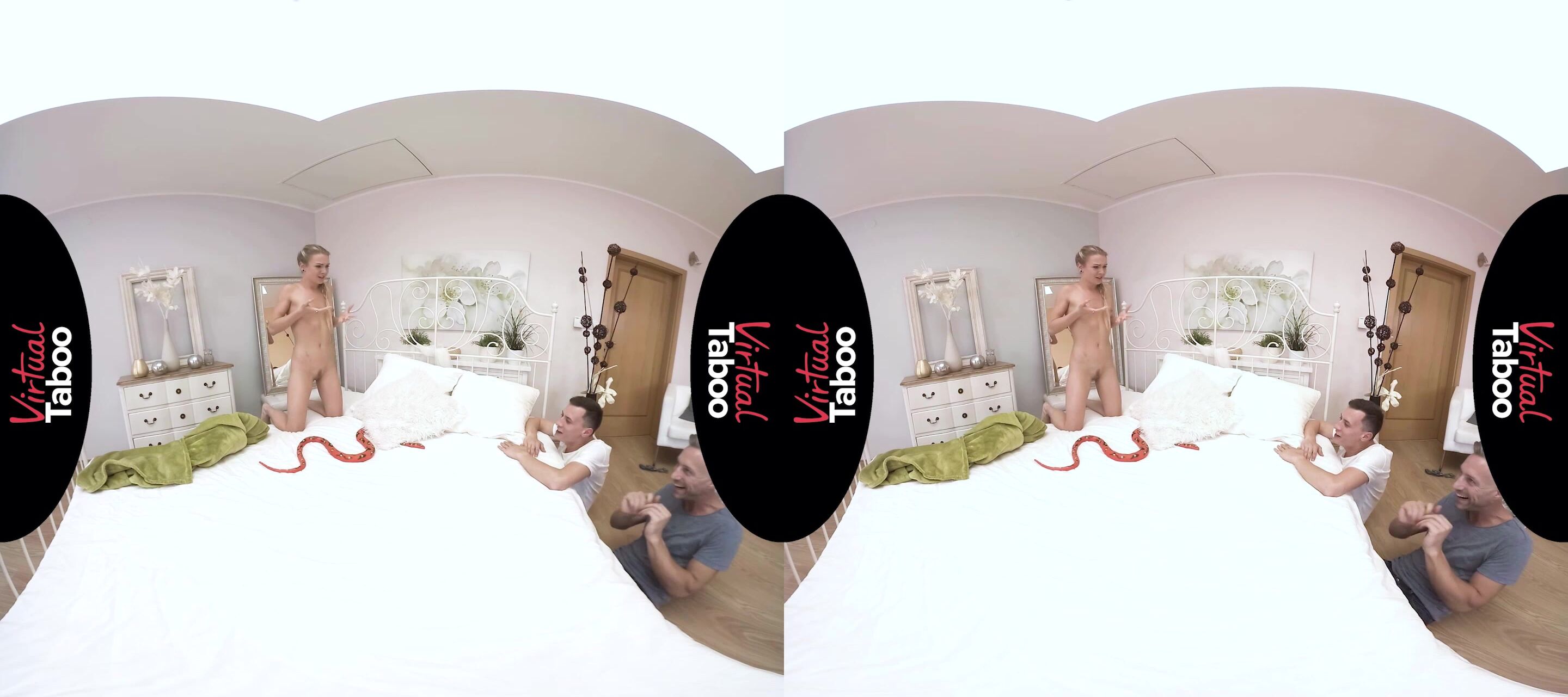 Le demi-frère d'Alecia et son ami décidèrent de lui faire une farce en cachant des jouets en caoutchouc en forme de serpent et d'araignée qui, par coïncidence, semblaient plutôt réels. Les mettant sous la couverture, les deux gars se cachèrent sous le lit de la belle Alcia Fox et attendirent qu'elle rentre. Bien sûr, tôt ou tard, cette adorable adolescente blonde entra dans la pièce, s'assit sur son lit et commença à se déshabiller avec l'intention de se masturber. Naturellement, les deux gars se penchèrent de sous le lit et furent choqués de voir cette douce jeune fille frotter son castor humide. Mais, alors qu'elle se doigtait la chatte, cette fille déplaça la couverture et vit les jouets en caoutchouc en dessous, ce qui, à son tour, la poussa à crier à tue-tête. Son demi-frère et son meilleur ami sautèrent de sous le lit et commencèrent à la déranger, mais, comme elle était vraiment effrayée, ils décidèrent de la calmer en embrassant son corps nu. Une chose en entraîna une autre et cette mignonne chérie eut soudainement ses deux bites dans ses mains et dans sa bouche. Puis, l'un des mecs a décidé de commencer à lui brancher la chatte humide par derrière pendant qu'elle s'occupait de la longue tige d'un autre gars avant de le laisser lui marteler la chatte également. Grimpant sur une bite raide, cette fille sexy a sucé l'autre avant de se faire défoncer la chatte juteuse dans une pose de missionnaire et une pose de cowgirl inversée. Quand les gars ne pouvaient plus se contenir, cette petite adolescente s'est mise à genoux et les a laissés lui couvrir le visage de sperme.