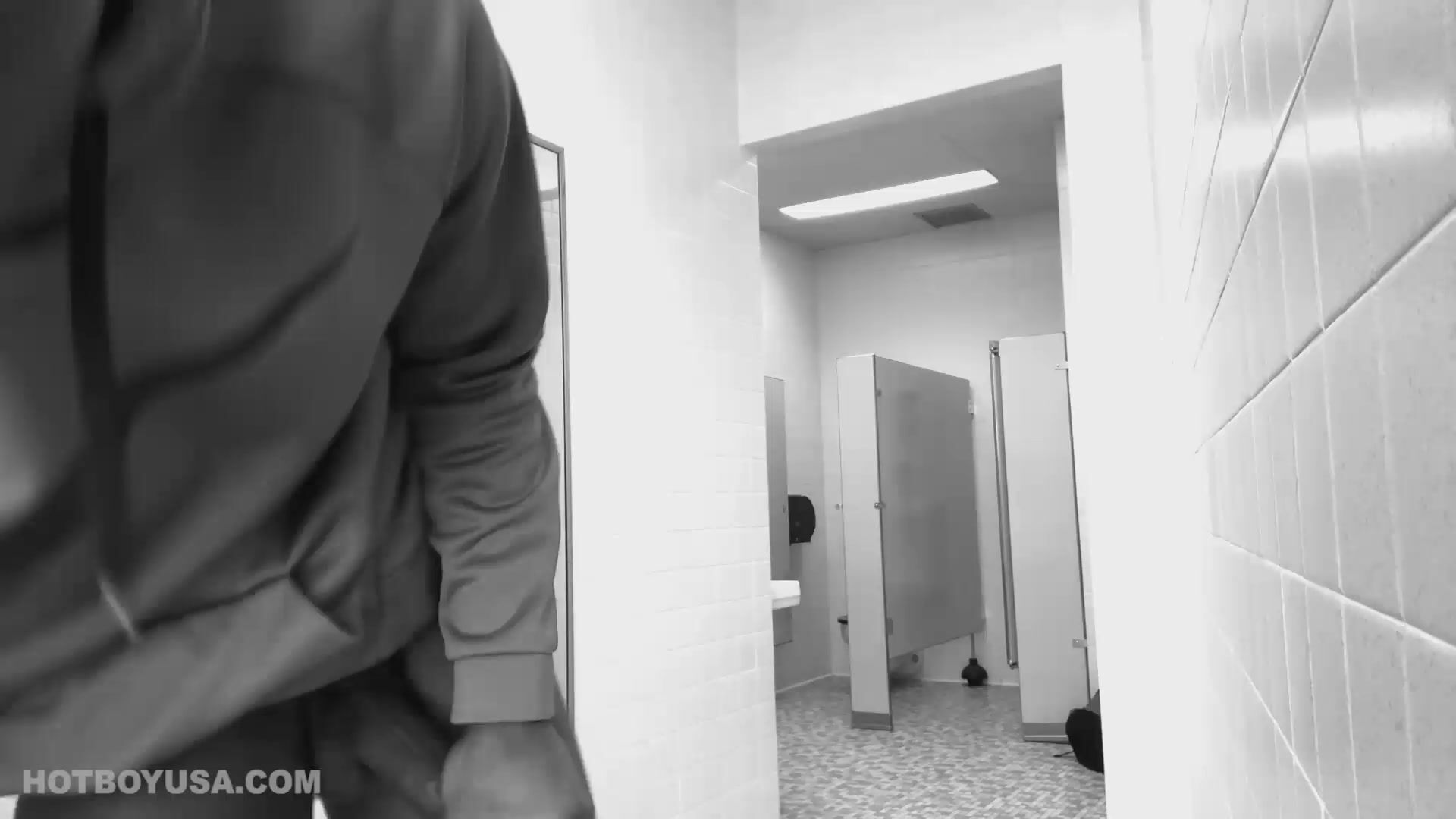 Filmé en noir et blanc, Chris est dans des toilettes publiques pour nous montrer son talent. Déjà bien bandé, il baisse son short pour dévoiler une belle bite et un beau cul d'ébène. Le jeune homme audacieux est partout dans la salle de bain, caressant sa grosse queue noire. Finalement, il s'installe dans une cabine et s'assoit pour éjaculer.
