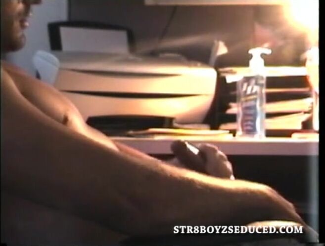 Zack, l'hétéro, est de retour devant son ordinateur, en train de regarder une nouvelle vidéo porno. Il utilise son lubrifiant préféré sur sa bite et commence à la caresser en rythme. Vinnie s'agenouille derrière sa chaise et commence à lui caresser le corps, tout en jouant. Bientôt, il prend sa bite et la caresse pour lui. Zack ne tarde pas à éjaculer.